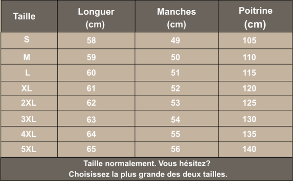• Tailles : S à 3XL (voir Guide des Tailles)