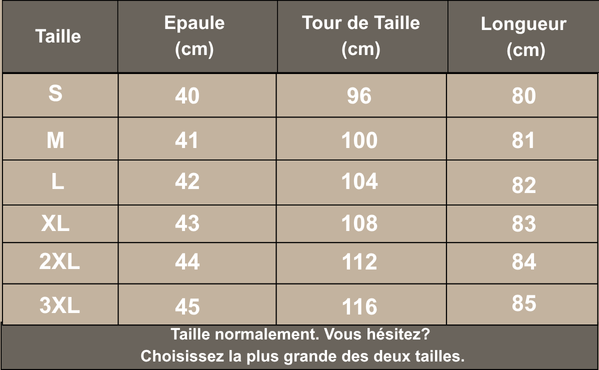 • Doublure chaude : protection maximale contre le froid.