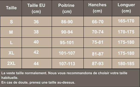 Coupe flatteuse : taille légèrement cintrée et longueur couvrant les hanches pour une silhouette harmonieuse.